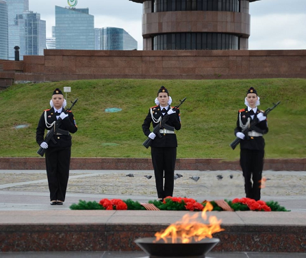 Воспитанникам выпала честь нести Почётный караул у «Огня Памяти и Славы» на Поклонной горе.