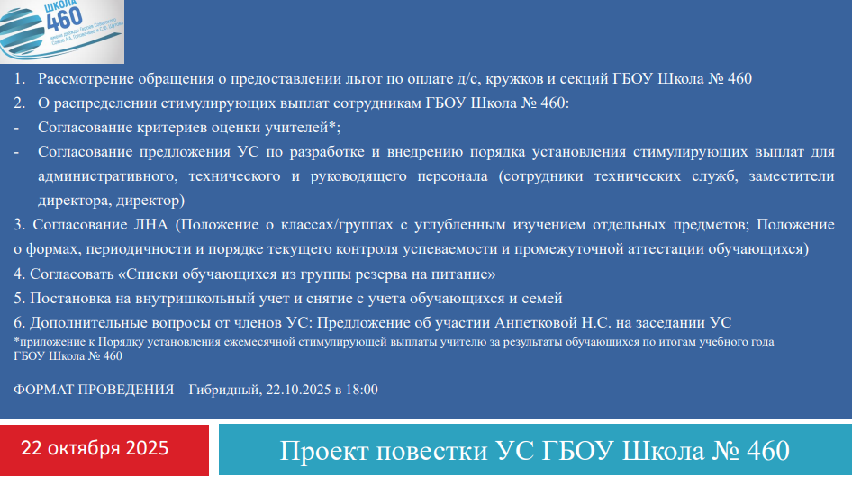 Заседание Управляющего совета 22 октября в 18:00 21.10.2025